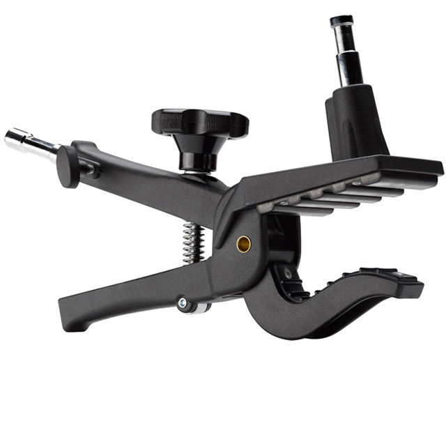 Быстросъемный многофункциональный зажим, охватывающий плоские или цилиндрические поверхности. Он оснащен регулятором натяжения и 5/8'' гнездом и стержнем для присоединения двух небольших креплений осветительных приборов или аксессуаров для их установки. Режим совместим с диаметром от 1/4" до 3-1/8".