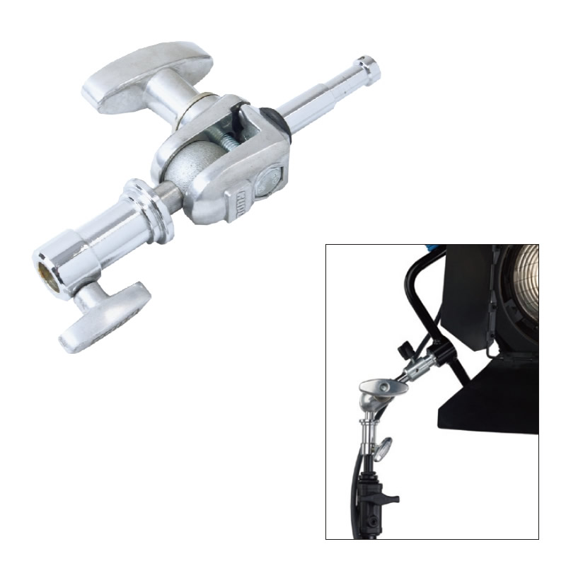 Переходник 5/8" на шаровом механизме наколоняется под углом от -45° до 90°, а хомут поворачивается на 360°. Конструкция оснащена штифтом втулкой с внутренним диаметром 5/8" (16 мм), внешним диаметром 9/8" (28 мм).