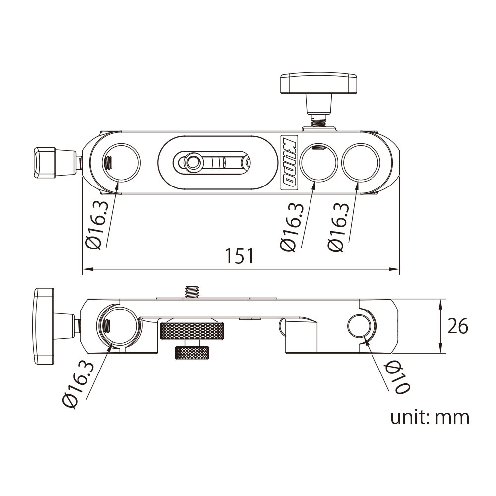 Сделан из литья алюминия, благодаря чему характеризуется лёгким весом и долговечностью. В дополнение к стандартному креплению с резьбой 1/4-20" для небольшой камеры, он также оснащён переходником 1/4'' - 3/8'' для совместимости с крепёжной резьбой разных типов.