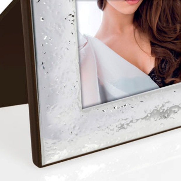 Фоторамка ZEP серия SILVER PLATED  сделана в Италии из посеребренного  алюминия. Для обработки поверхности  используется напыление серебром. Такое покрытие характеризуется высокой прочностью и устойчивостью к окислению. В  углу  каждой рамки стоит клеймо, как подтверждение подлинности сертификата серебряного напыления. Задник рамки выполнен из дерева