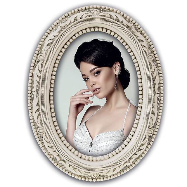 Фоторамка Zep Neuchatel  выполнена из полирезина с рельефным декором в классическом стиле и с эффектом старины.  Овальная форма. Цвет молочный. Формат 10x15. Размещение настольное. Упакована в коробку.