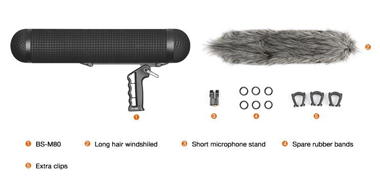 BS-M80 – аксессуар, предназначенный для защиты микрофона от ударов и вибраций и снижения шума ветра при минимальных потерях высоких частот.