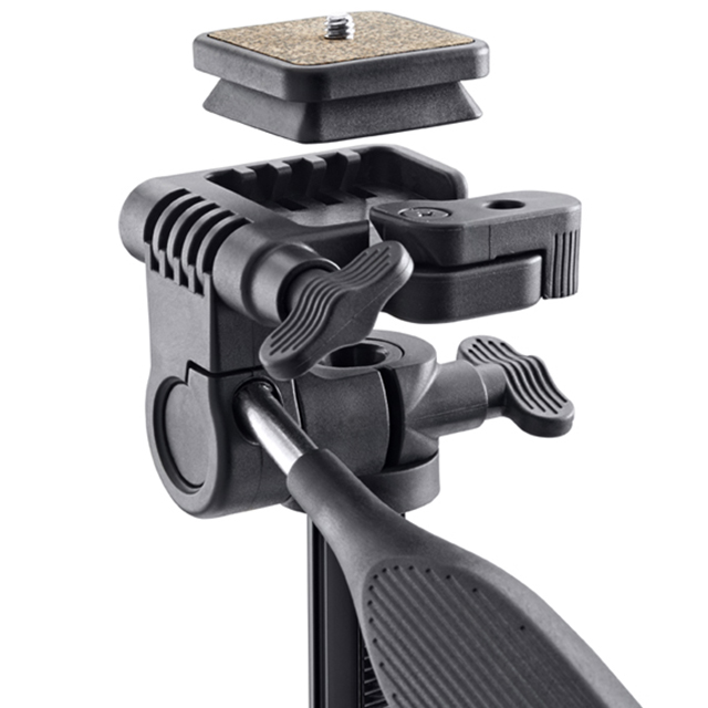 Прочное и фиксирующееся с помощью зажима центральное крепление вместе с поворачивающимися на 360 градусов резиновыми наконечниками для ножек гарантирует надёжность и устойчивость установки.