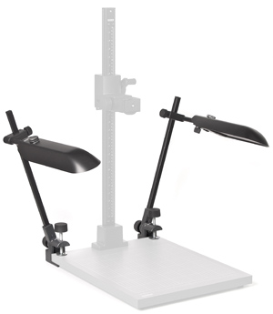 Осветительные приборы можно наклонять и поворачивать, а также можно регулировать их высоту.  Вертикальные кронштейны ламп можно наклонять с помощью фиксаторов.
