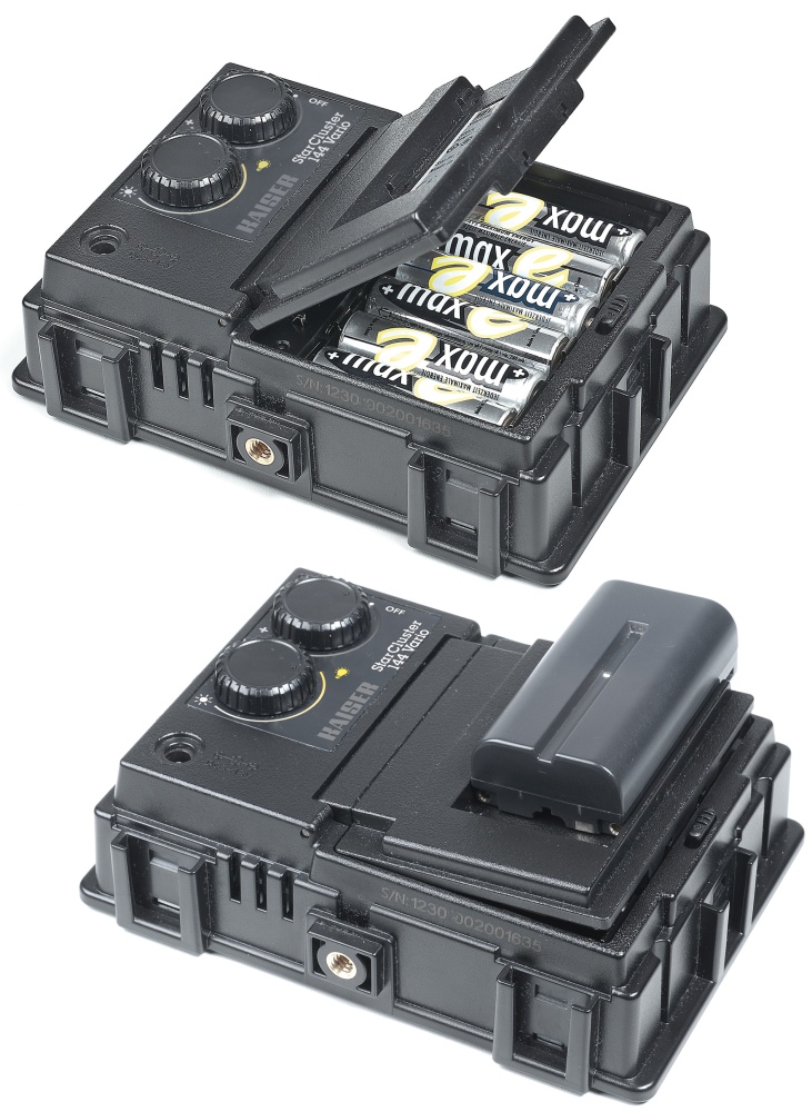Питание от 6 стандартных аккумуляторных батарей AA. Также может питаться от батареи Sony типа NP-F (не входит в комплект поставки)
